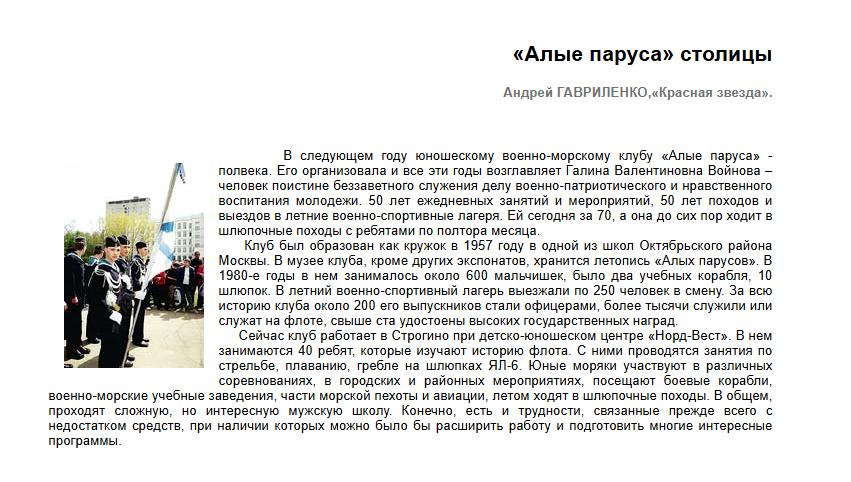 Юношеский военно-морской клуб АЛЫЕ ПАРУСА при ЦПКиО им Горького